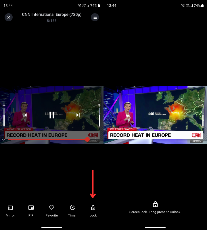 A configuração de bloqueio está disponível nos dispositivos Android. Para bloquear a tela enquanto assiste IPTV no seu dispositivo móvel: